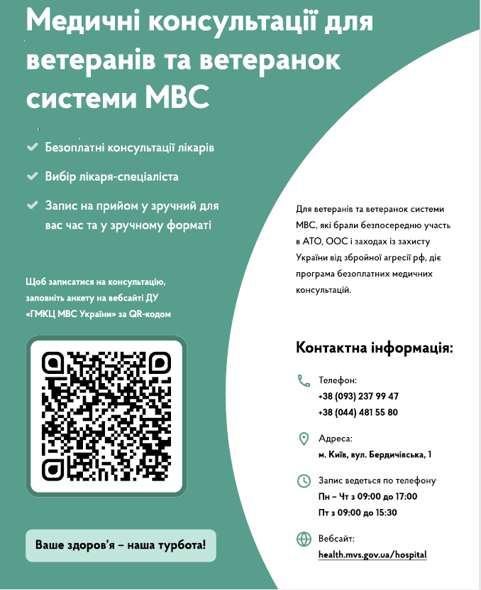 медичні консультації для ветеранів та ветеранок системи МВС 02.09.2025 0 Comments Медичні консультації для ветеранів та ветеранок Read More